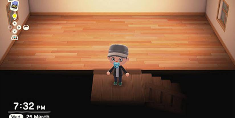 For another set of stairs right at the entrance, you can have the final room — a basement. Many people use this as a horror room to freak out their friends, some people make it an arcade — yes, you can buy arcade machines from Nook's Cranny! — and some people even just use it to store turnips.