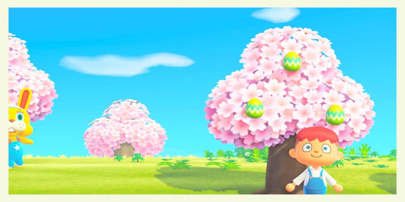 The Animal Crossing event starts with Easter eggs, with different types of eggs are found all over the island. They can drop from special presents floating via balloon, they can be fished up, dug up, or even grown on trees. These eggs can be used to make special Bunny Day furniture and clothing, but players will have to find those hidden on the island, too.