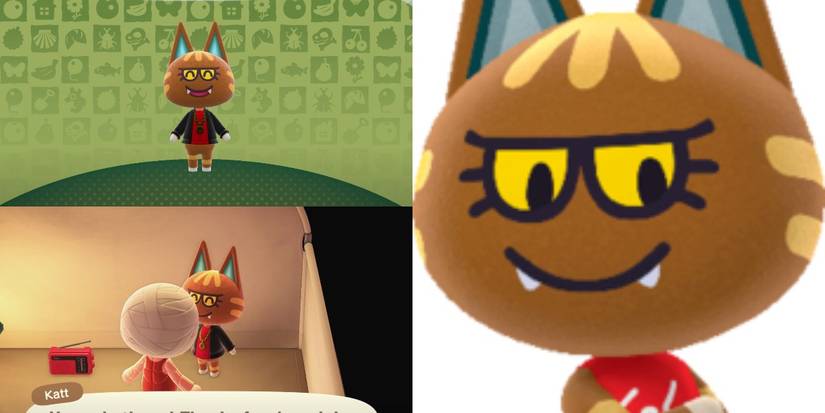 Katt's "sisterly" personality makes her the ideal adorable villager. Her fangy smile and wide, yellow eyes make her one of the cutest cat villagers in New Horizons. Plus, she's positive, uplifting, and easy to get along with. Her fur is brown and beige, and she often wears red shirts.
