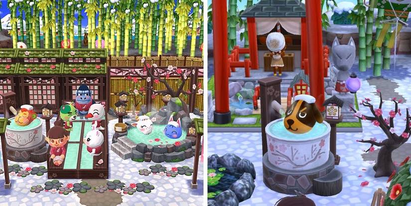 The cypress bathtub and outdoor bath are among the most sought-after items in New Horizons, making the perfect foundations for a hot spring area or zen garden on an island. But they suffer from one major problem – players and their villagers cannot go into the baths to relax, but Pocket Camp's Serene Hotspring series solves this issue.