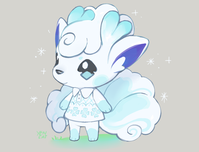 This villager was made by Yen_Cat. It is a villager of an Alolan Vulpix, which is a fan favorite region variant from the Sun and Moon games. It is adorable as a villager, and we love that the artist put it in a little winter-themed shirt since it is an Ice-Type. The villager design is also just so fluffy looking that we want to hug her and not let go.
