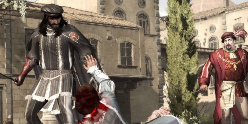 The affluent Florentine Pazzi family played a major role in Assassin's Creed II. The youngest of them, Vieri, is one of the first people you meet in the game, as you engage in a street brawl with him and his gang.