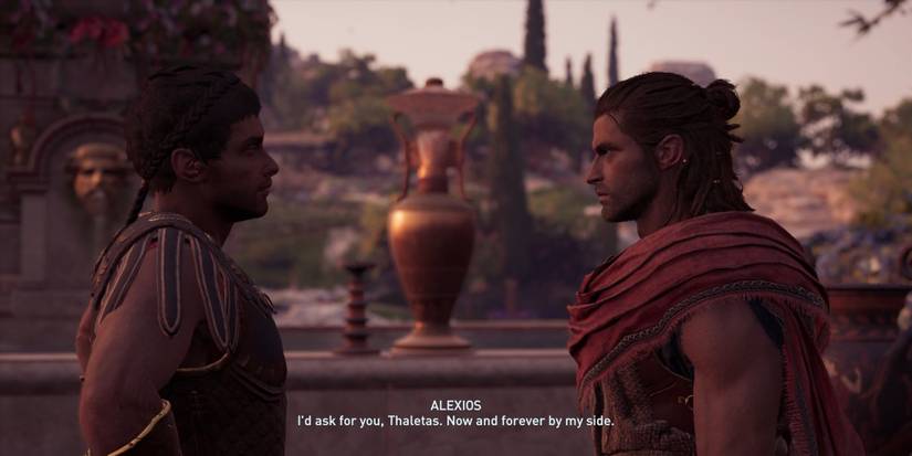 Given that most "romances" are random hook-ups, Alexios baring his feelings at this moment is a key development in the character. The chemistry between Alexios and Thaletas is undeniable. With this line, Alexios makes it clear what his true feelings are. These two deserved a happy ending!