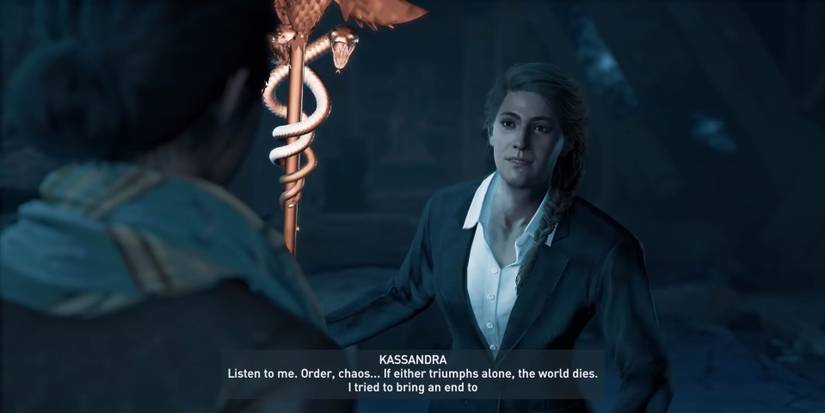 It's certainly a moment that works undoubtedly best with Kassandra. For one, Alexios doesn't look right in that suit! But more importantly, Kassandra's direct approach is what Layla needs to hear. She needs to understand the burden she is taking in this short exchange. There is also a numbness when Kassandra speaks, showing how tired she is and how ready she is to walk away from the staff.