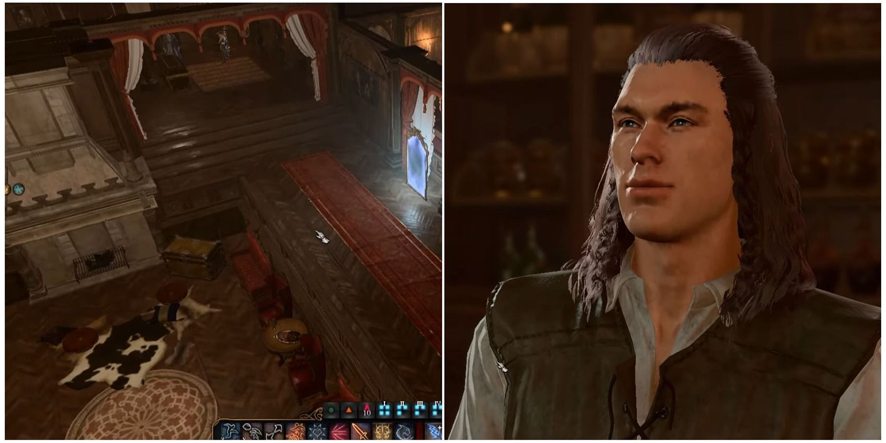 After heading inside the Elfsong Tavern, speak to the half-elf innkeeper and moneylender, Alan Alyth. He will tell you that due to the gruesome murder of Duke Stelmane, which was committed above, he can't seem to rent out the entire floor.