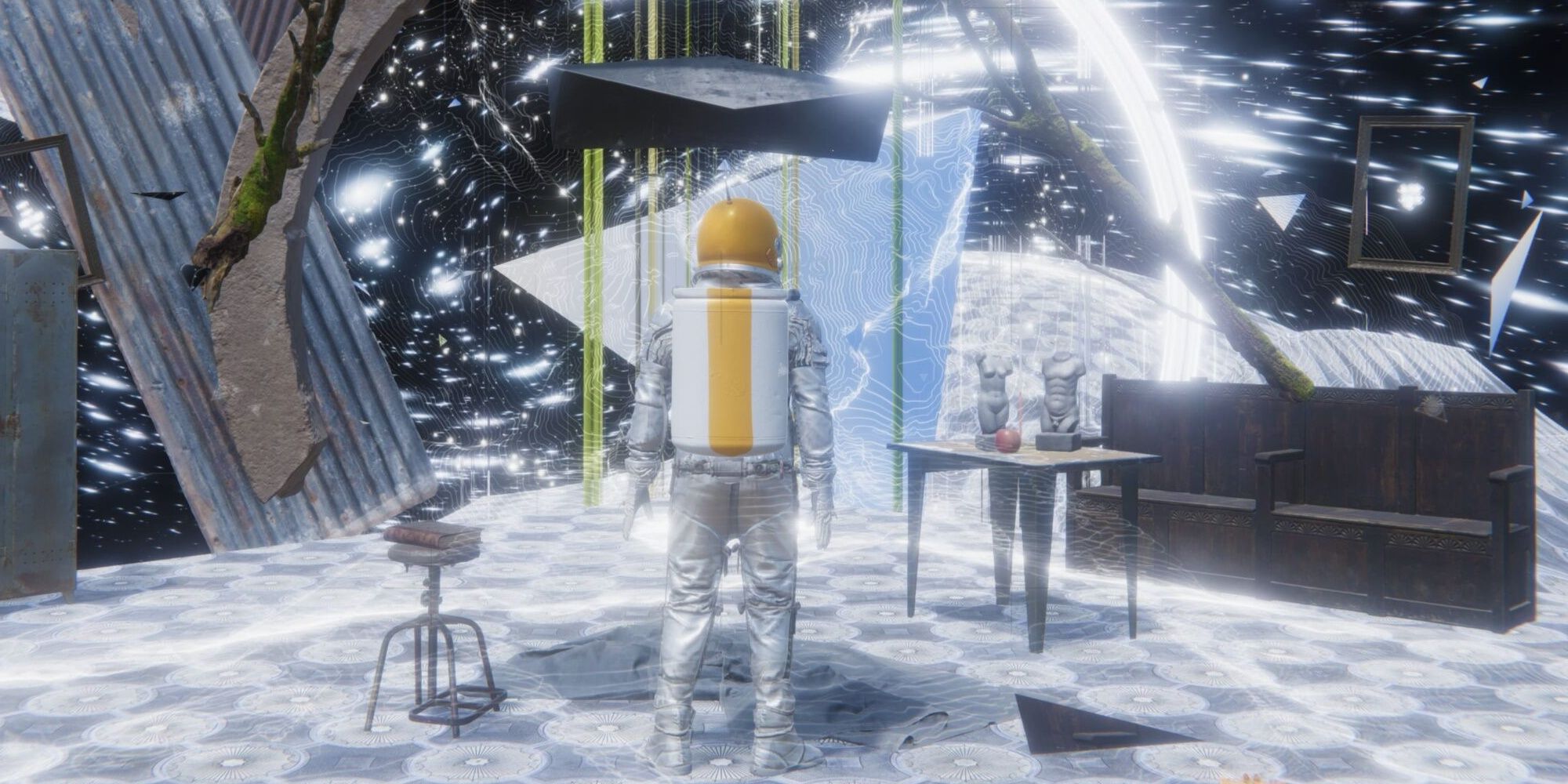The game's visuals and levels themselves don't often contain much meaning; rather, they provide a backdrop for a complex story about an alien civilisation and different dimensions. Players should do their best to consider what the game's narrative is telling them at face value, as well as any deeper meaning that might be there.
