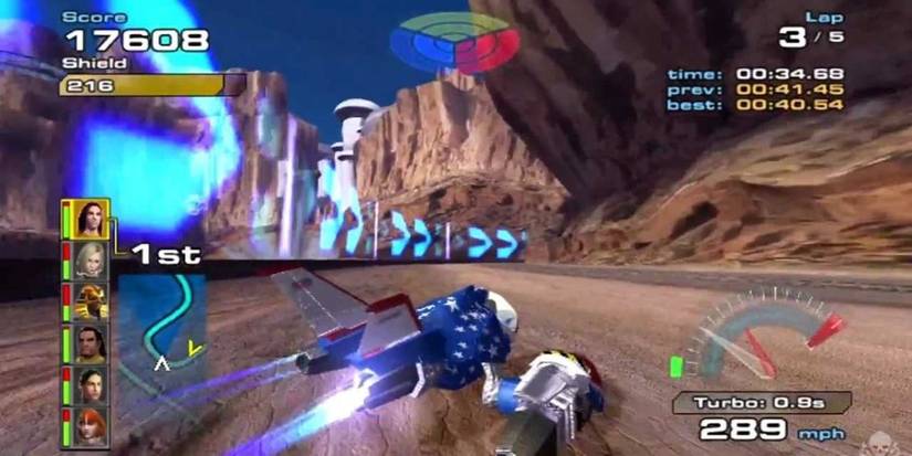 Quantum Redshift is a futuristic, sci-fi racing game that borrows a lot from the Wipeout and F-Zero series of games. Each racer in the game comes from a different part of the world and has their own ship, backstory, and stats.