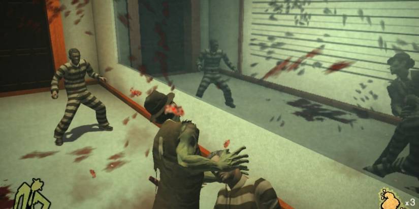 Created using the same engine as the original Halo, Stubbs the Zombie in Rebel Without a Pulse has you playing as a zombie in a futuristic 1959 filled with hover cars and robots. You use your body as a way to fight by doing things like throwing your hand on the ground and controlling it to seek out your target. To recharge the different abilities you have, you must eat brains which is done by whittling away a character's health until you can do so. The soundtrack consists of songs from the 1950s and 60s covered by modern bands.
