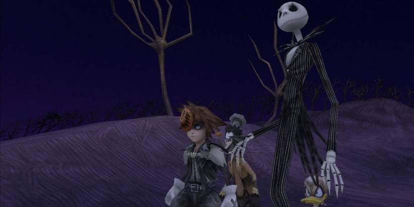 As Sora, Donald, and Goofy hop from world to world, they occasionally switch up their forms to blend in with the locals. This is the case in Halloween Town, where Sora dons an appropriately spooky black outfit with a Jack O’Lantern mask that covers part of his face. The mask’s sly wink tells residents that they can trust him, but those devil horns allude to a more mischievous side.