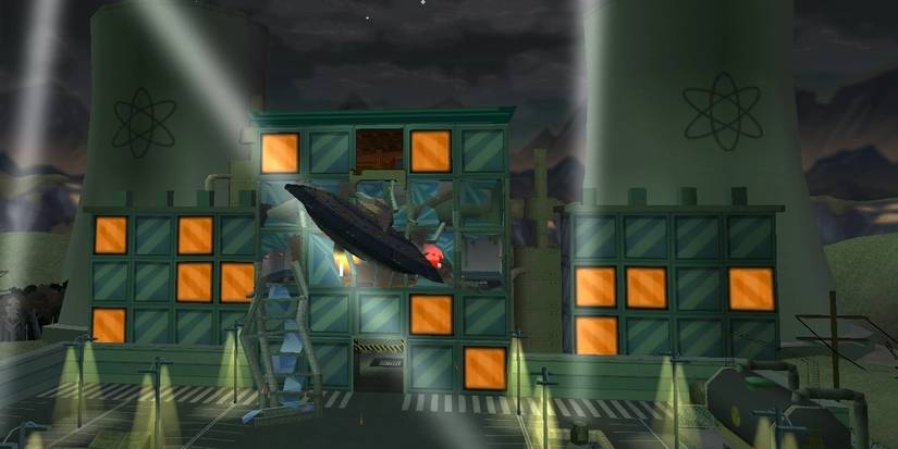 Decorations are up, the church has been burnt down and the rich district has put up barricades so that no zombies can enter. Its the perfect setting for a showdown with Kang and Kodos, who must be defeated by delivering nuclear waste into their mothership. The spooky music during the level adds to the ambiance of the level, while also increasing the stress.