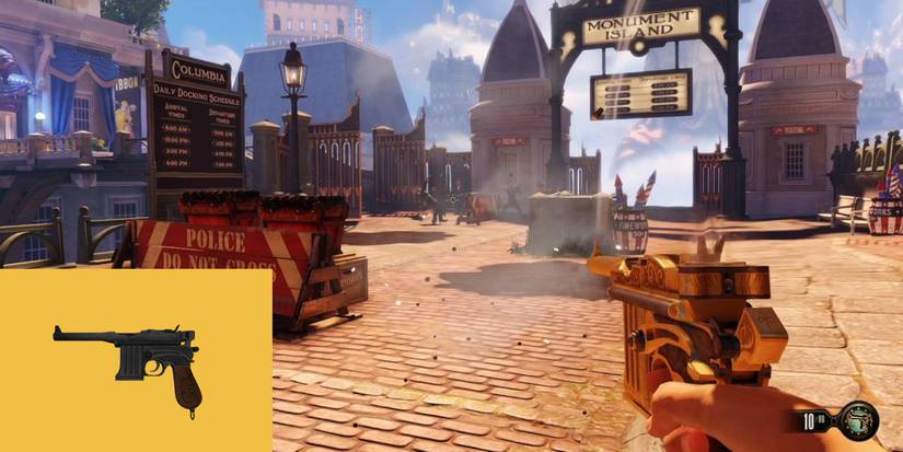 Broadsider Pistol is the gun that Booker takes out of his box in the intro of the game. This is the first gun that players use in-game, which is why it is much weaker compared to the other weapons.