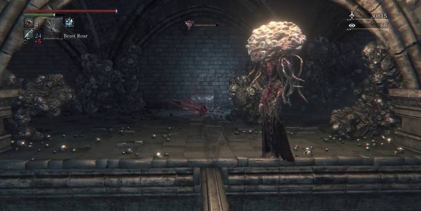 Bloodborne is just as hard as any other Soulslike game. It has tough bosses, surprising ambushes, and enemies that do their utmost to have the players' blood spilled. While the games may differ in many ways, there are some things that stayed consistent from Bloodborne to Dark Souls: summoning friends or NPCs for assistance, dodging (even though in this game it's a dash, instead of a roll), and spells, also known as Hunter Tools.