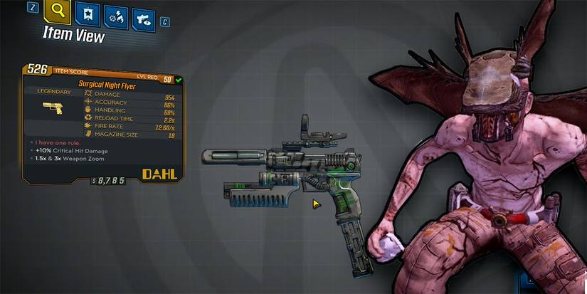 There's not a day that goes by that we don't miss Firefly, Nathan Fillian and space-sci fi at its best! So, we might have just a bit of bias for this next pistol that quite obviously is a reference to the 2002 niche classic. But, even aside from that, the gun is just good! On every crit it lights the enemy aflame, giving it a 100% status effect chance in the hands of an accurate player or a Fade Away FL4K. The gun has no sight and its accuracy isn't great at a far range, but it's fast fire-rate and quick reloads are perfect for wearing down red health bars on any difficulty. I mean the burn damage it does is almost as much as its bullet damage! Seriously, just watch that fire...fly. Oof, even we cringed at that one.