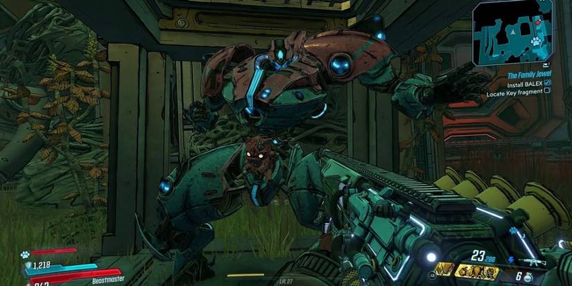 During your time on Eden-6, you must venture into the wilderness to find the ship known as The Crown Jewel. While on your journey, you come across BALEX, a plush animal with The Crown Jewels' navigation AI inside of it and amazingly voiced by Ice-T. While going through the jewel, you find an old robot that you must place BALEX inside. The only problem is that you can only fit him in the robot's crotch. After being placed in an awkward location and asked to reply on the look of it Fl4k states, "I am trying not to look at your plush codpiece. And failing."