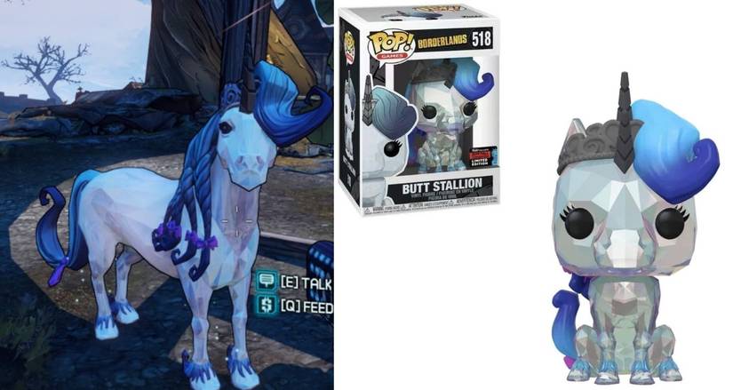 Butt Stallion is the diamond pony of Handsome Jack and an NPC introduced in Borderlands 2. She’s also got ties to Tiny Tina, and if players feed the pony 5 Eridium, she will produce a piece of loot for them by vomiting or defecating either a weapon of varying rarity, health, ammo, or money. Butt Stallion was a 2019 NYCC (New York Comic Con) and GameStop exclusive, and is valued at $28.