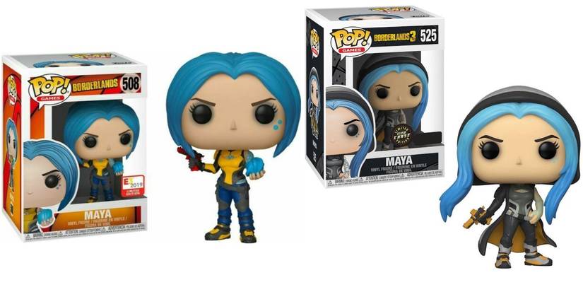 A Siren like Lilith, Maya was introduced in Borderlands 2 and returned as an NPC in Borderlands 3. The first Maya released was a 2019 E3/ GameStop exclusive and is valued at $9. For Borderlands 3, another Maya debuted, one regular and one as a Chase variation. Both were GameStop exclusives, but the Chase variant glows in the dark, making it have a value of $23 as opposed to the “regular” value of $9.