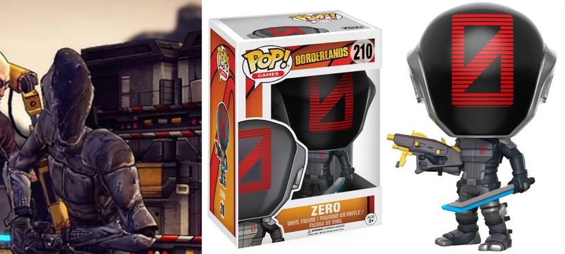 Written as “Zer0,” this playable assassin was introduced in Borderlands 2, and is an NPC in both Borderlands 3 and Tales from the Borderlands. Zero only has one Funko Pop version that was released in 2017, currently valued at $46.
