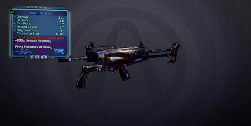 SMGs are always rather versatile, but in the first Borderlands game, the Gasher lacks the enjoyability that players can find with most SMGs. This specific SMG will fire in three-round bursts, which somehow decreases accuracy, and increases recoil, but bolsters a rather useless boost to fire rate, damage, and clip size.