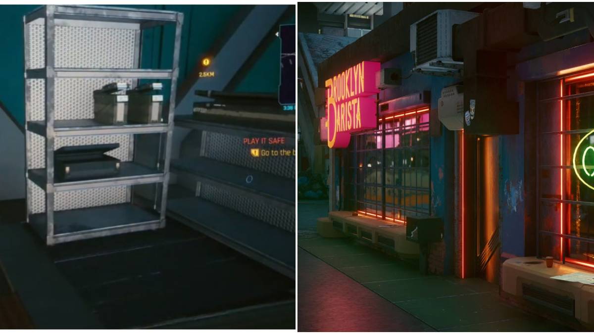 There's a spot that players need to jump across to reach this Hidden Gem. Make sure to not fall into the gap or V will have to use their parkour skills to climb back up and try again. If players can avoid taking some serious fall damage, they can get some serious goodies here.