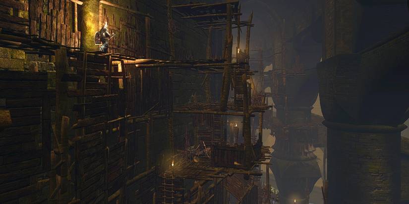 To access the skip players must run down the stairs at Firelink Shrine, past Anastacia (The Fire Keeper), to the elevator room. Players must take the elevator down and go right into the next building, after exiting the stairs. They'll run into a locked door, which they can open with the Master Key. Across the wooden bridge, into the cave, is Blighttown.