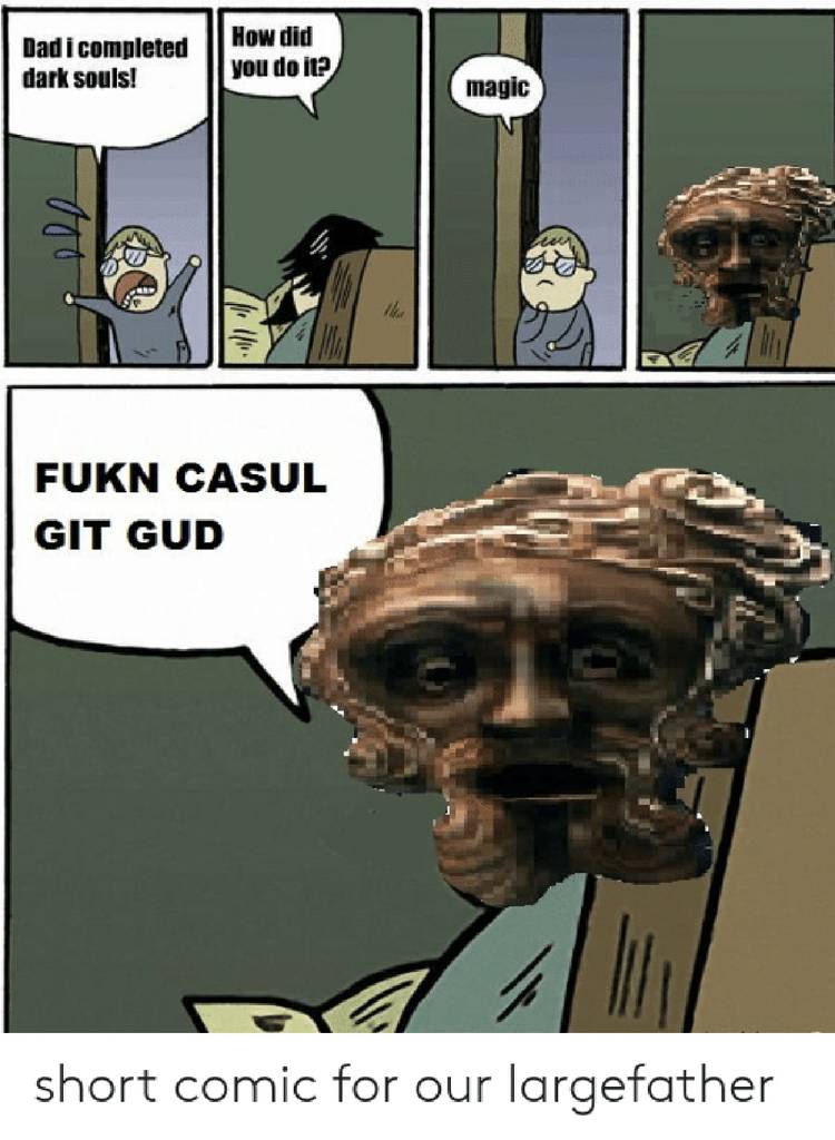 Giant Dad has to be a legendary Dark Souls meme. That is because it is undeniably specific. Not everyone can understand the content of these memes, and that is why they work the best. It is for the few of us who are hardcore. Giant Dad will go down as one of the weirdest memes in the Souls community. For the people who can't understand the feel of Giant Dad, realize that he is not a monster; he is just ahead of the curve.