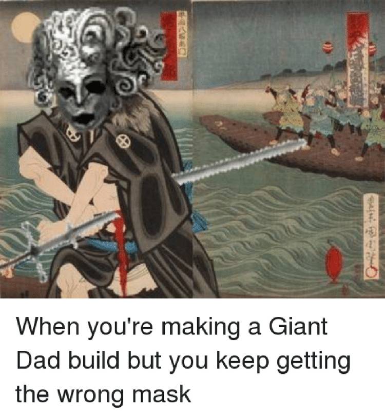 Following up on the last meme, getting the build to perfection has to be the most critical part. It doesn't matter if the world is turning upside down, Giant Dad needs to be justified in the looks and the stats. If there's anything that is not up to a point, the build is fake. So work on the outfit, get everything that makes Giant Dad who he is. Then leap into the PvP, Stun-locking enemies to victory. When a chef prepares a meal, there's no easy way out. Every ingredient counts.