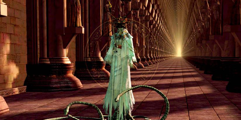 With relentless Crystal Golems hounding the player and a Hydra that snipes with blasts of water, Darkroot Basin can be a taxing place to traverse. Though, getting up close and personal with the living artillery can be an even more daunting prospect. Thankfully, slaying this many-headed foe will not only permanently remove them from the area but will cause them to drop the Dusk Crown Ring; a piece of jewelry for those attempting a glass cannon build. This gold and green band cuts the player's health in half but allows for almost double the number of spells to be cast.