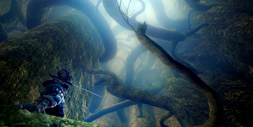 With numerous places where a misstep can lead to death, one might be tempted to rush through this secret area in order to get to Ash Lake, but doing so will cause the player to miss one of the best rings in the game. The Cloranthy Ring, which increases stamina regeneration, can be found by proceeding about halfway down the main branch from the first bonfire of the area. To the right, one should see a corpse in a cylindrical hollow with an item upon it. Get above this hollow and then roll off of the branch into it. Be careful though, as there is a hole in the center that will make you drop past the precious loot.