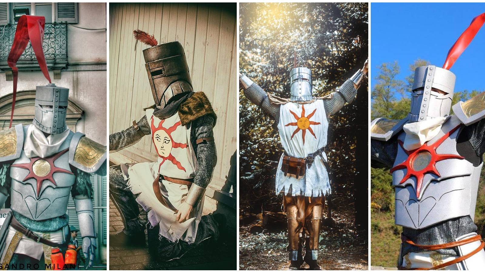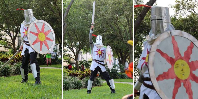 The chain mail looks light yet realistic, and the soft shoulder pads look quite similar to Solaire from the game. The helmet also looks pretty much identical. This one is genuinely a show-stealing costume.