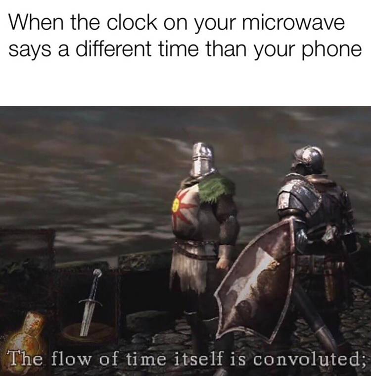 What makes this meme weirdly funny is that it is not directly related to Dark Souls, but instead just use the in-game quote to refer to a real-life problem. On a basic level, there can be technical problems whether it is a phone, car, or microwave. After all most of them run on some sort of energy source or batteries. But on a deeper level, maybe time itself is convoluted. Maybe there is nothing true in the world, and everything is a loop of incidents, and every idea anyone has ever had and their lives are mere tiny particles moving in infinite motion.