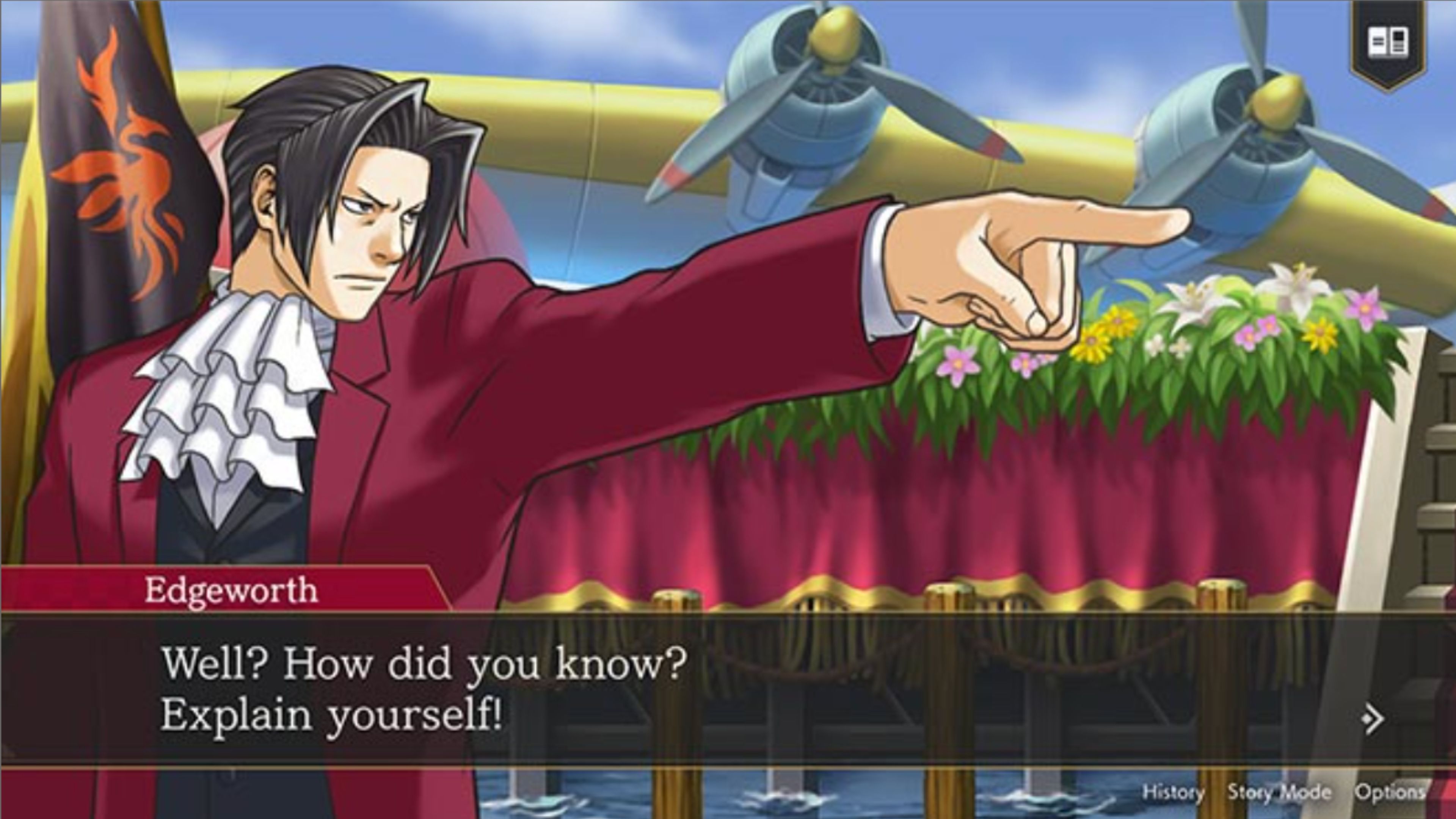 With his right to investigate crimes stripped from him, Edgeworth is left wondering if he should continue to pursue the truth as a prosecutor or as a defense attorney.
