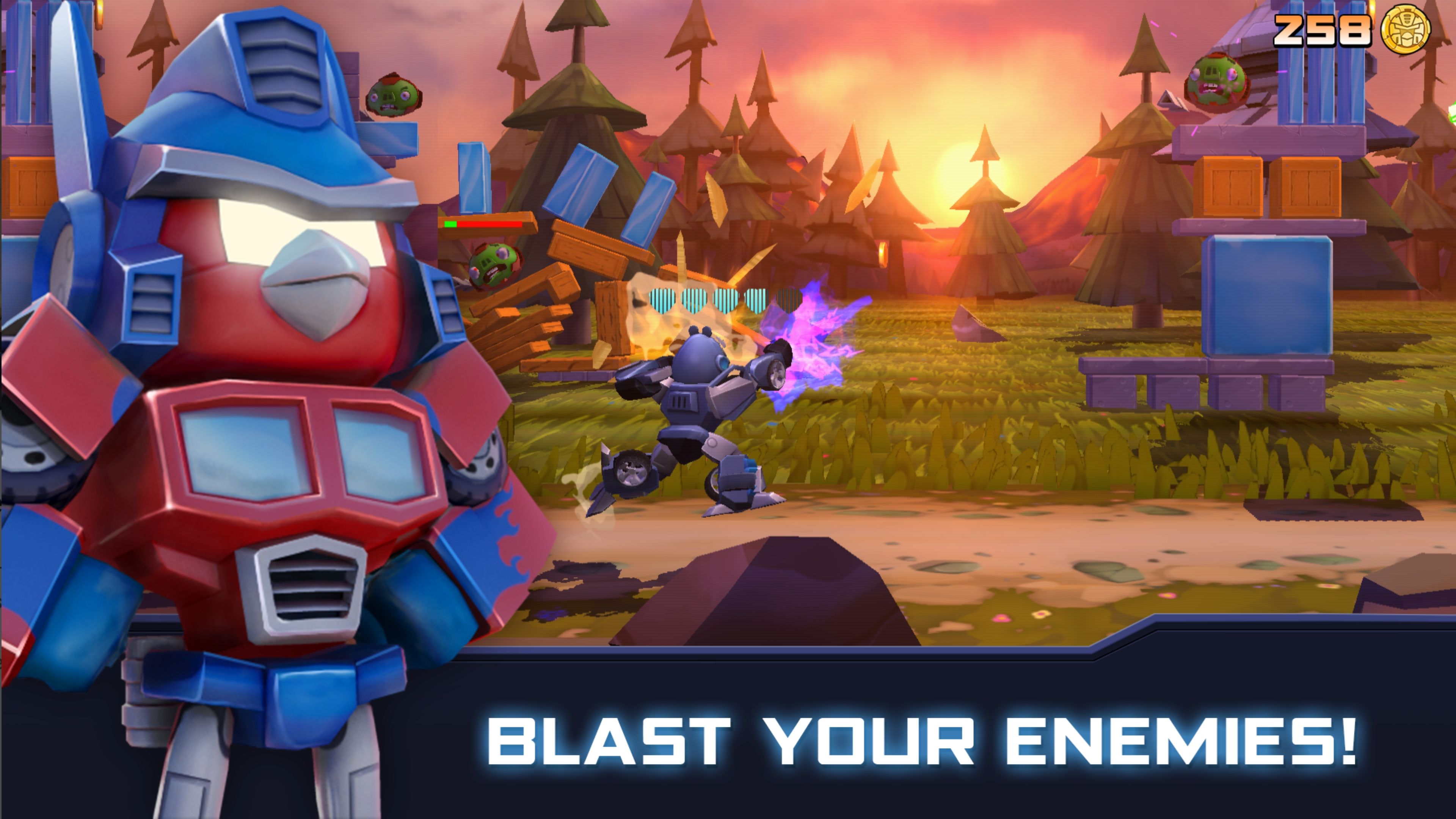 Angry Birds and Transformers collide in this action-packed, 3D shoot ‘em up adventure! The EggSpark has transformed the eggs into crazed robots who are destroying Piggy Island, but who can stop them?! Autobirds, ROLL OUT!