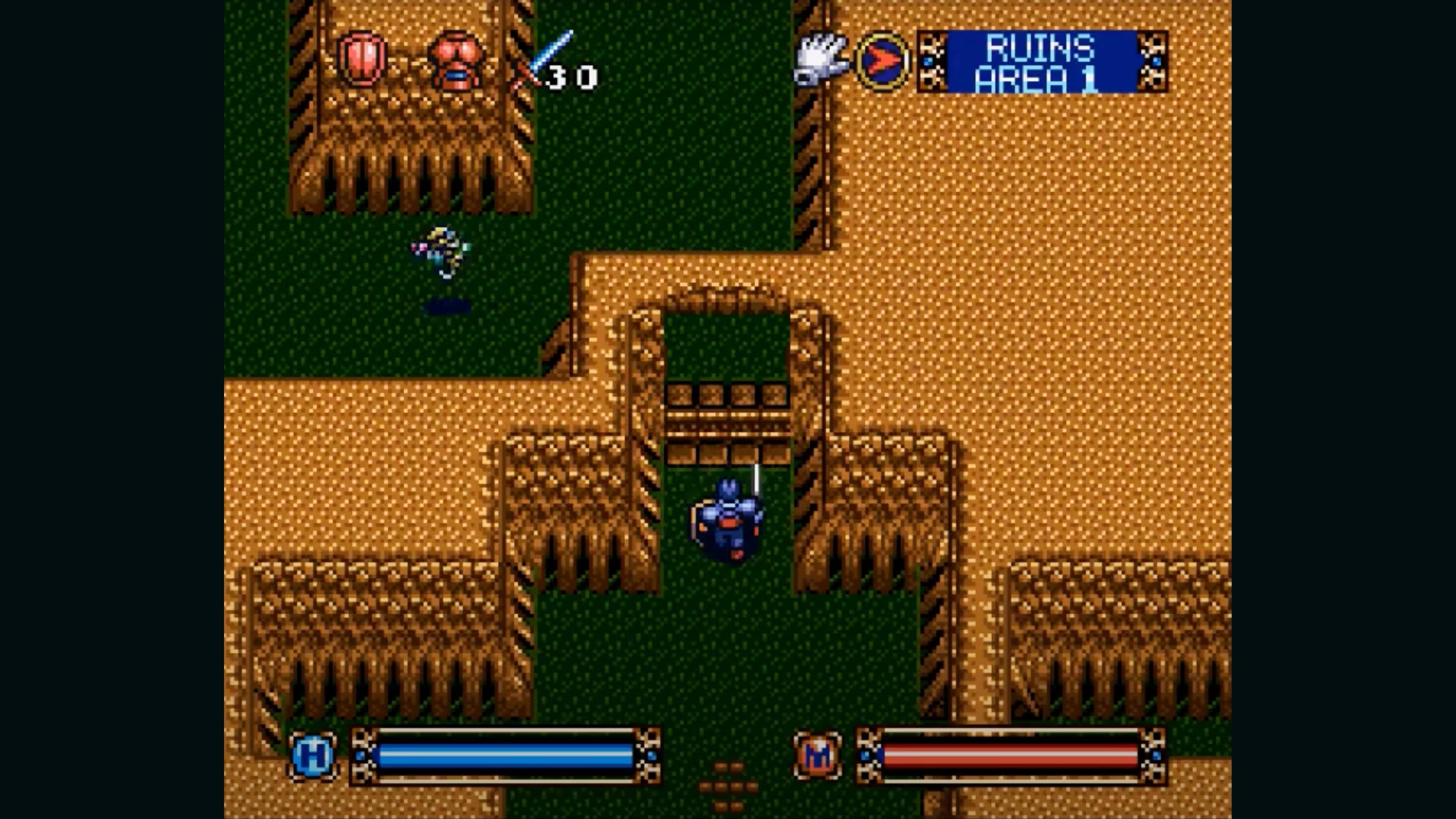 Now that you've mastered games like Breath of Fire and Brain Lord, we think you're ready for a role playing game where the sun doesn't shine and the monsters grow big, really big! In Brandish, you stand accused of murder, being pursued by a fearless bounty hunter looking to collect the reward. About to be captured, you fall into a deep underworld maze filled with dangerous traps and deadly monsters including: giant crabs, headless fist pounding warriors and fire spitting gargoyles. With the bounty hunter still hot on your trail, you must navigate your way out of the mazes and back to the surface ASAP. Our only advice: stay alert, well armed and always moving upwards!
