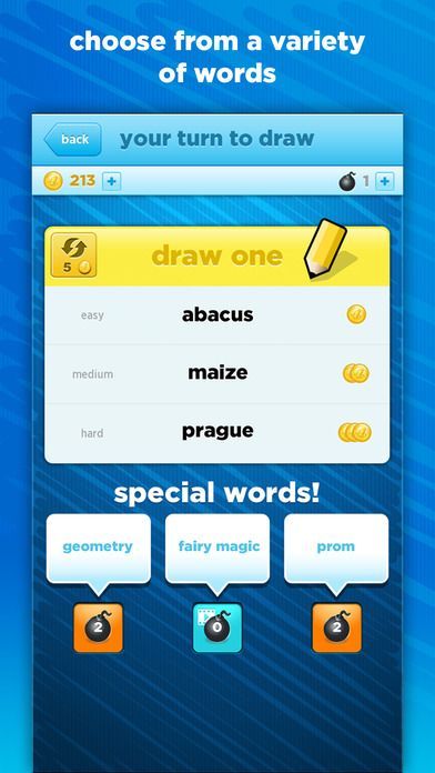 Play the addictive social drawing game! Select a word to draw for friends, then watch them try to guess and make hilarious drawings for you. Experience for yourself the laugh-out-loud game your friends are raving about! ★ No Drawing Skills Required! Stick figures and a sense of humor are welcome! Just wiggle you finger to create a doodle masterpiece! ★ Color Craze - Over 50 Vibrant Colors! Turn simple doodles into rich masterpieces with color packs. ★ Turn-based Gameplay - Perfect for gamers-on-the-go! Take turns drawing and guessing at your own pace. ★ Bombs - Stumped by a difficult word? Exchange it for a new one by exploding it with a bomb. ★ Mobile Push Notifications - Be alerted when it’s your turn to draw or guess. ★ Billions of drawings to date! Get in on the fun!