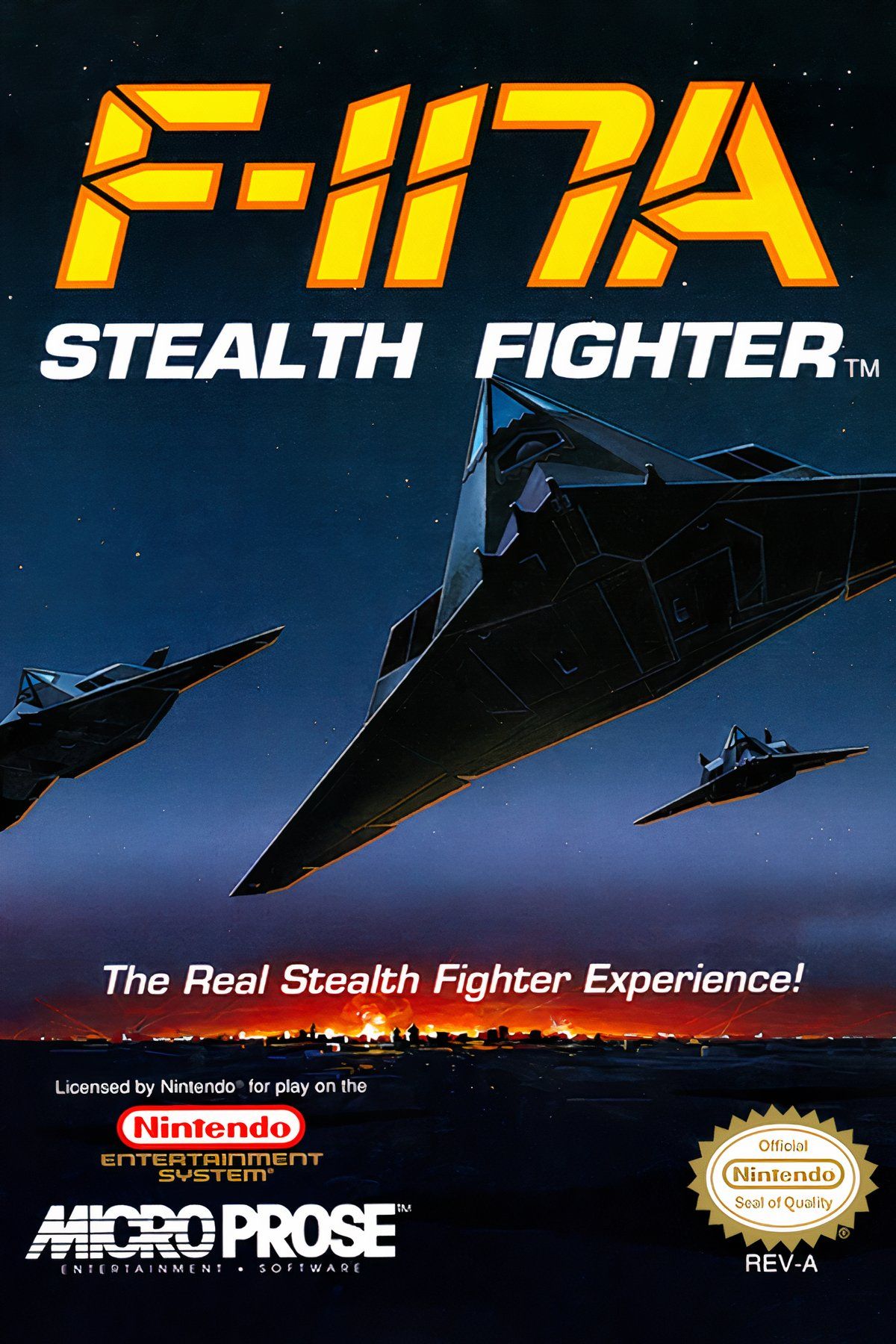 Strap yourself into the cockpit of the world's most elite fighting weapon! It's the F-117A Stealth Fighter. And once you fly it, you'll see why no other flight simulator compares! Incredible 3-D graphics will keep you glued to your screen as you experience the same intense pressures that gripped America's Gulf War pilots. Penetrate enemy airspace without being seen! Tangle with the enemy in treacherous dogfights! Launch awesome firepower against fierce opponents! Your wait is over. The ultimate weapon has arrived. Now it's your turn to pilot the real Stealth Fighter!