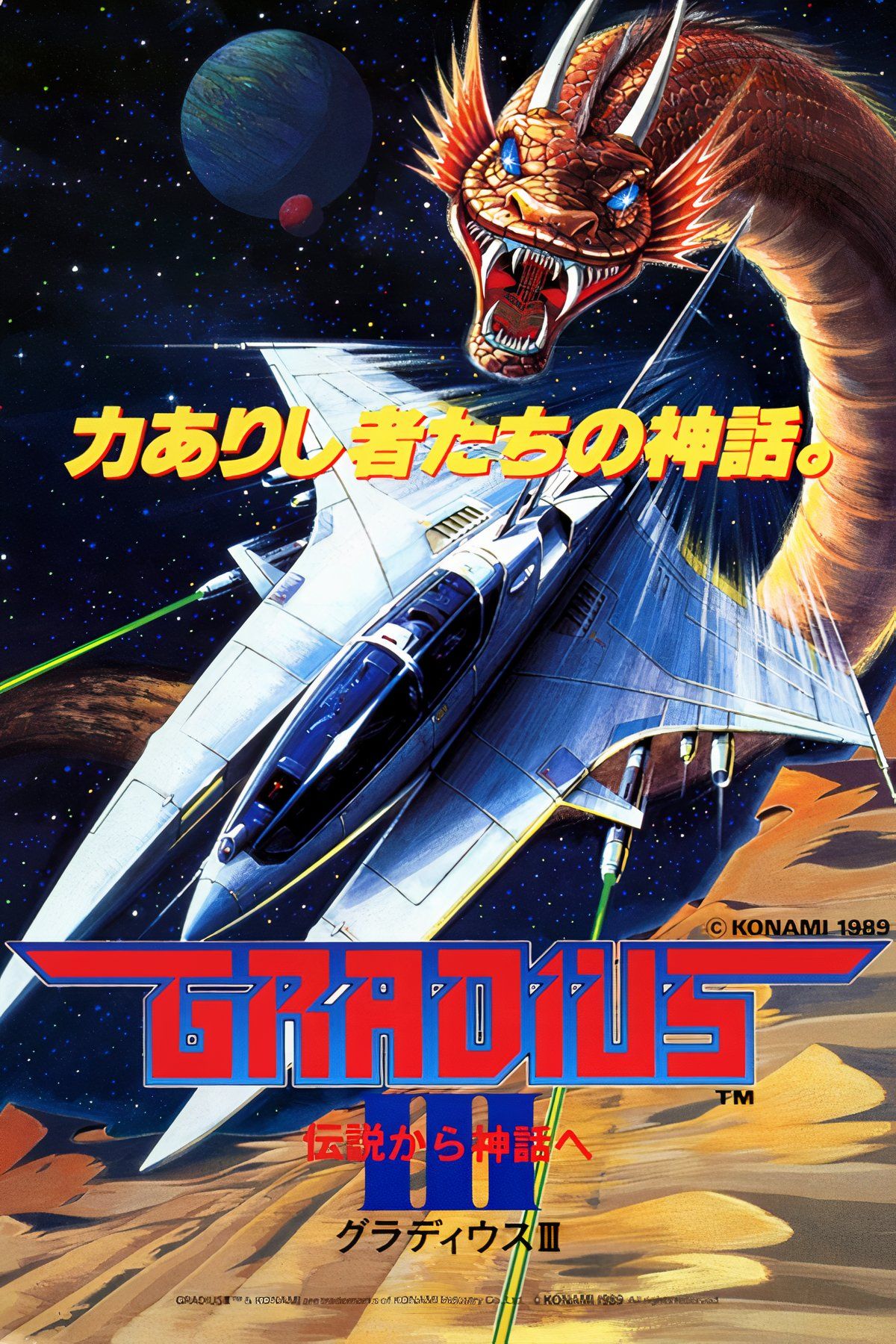 "GRADIUS III" is a scrolling shooter game released by KONAMI in 1989.