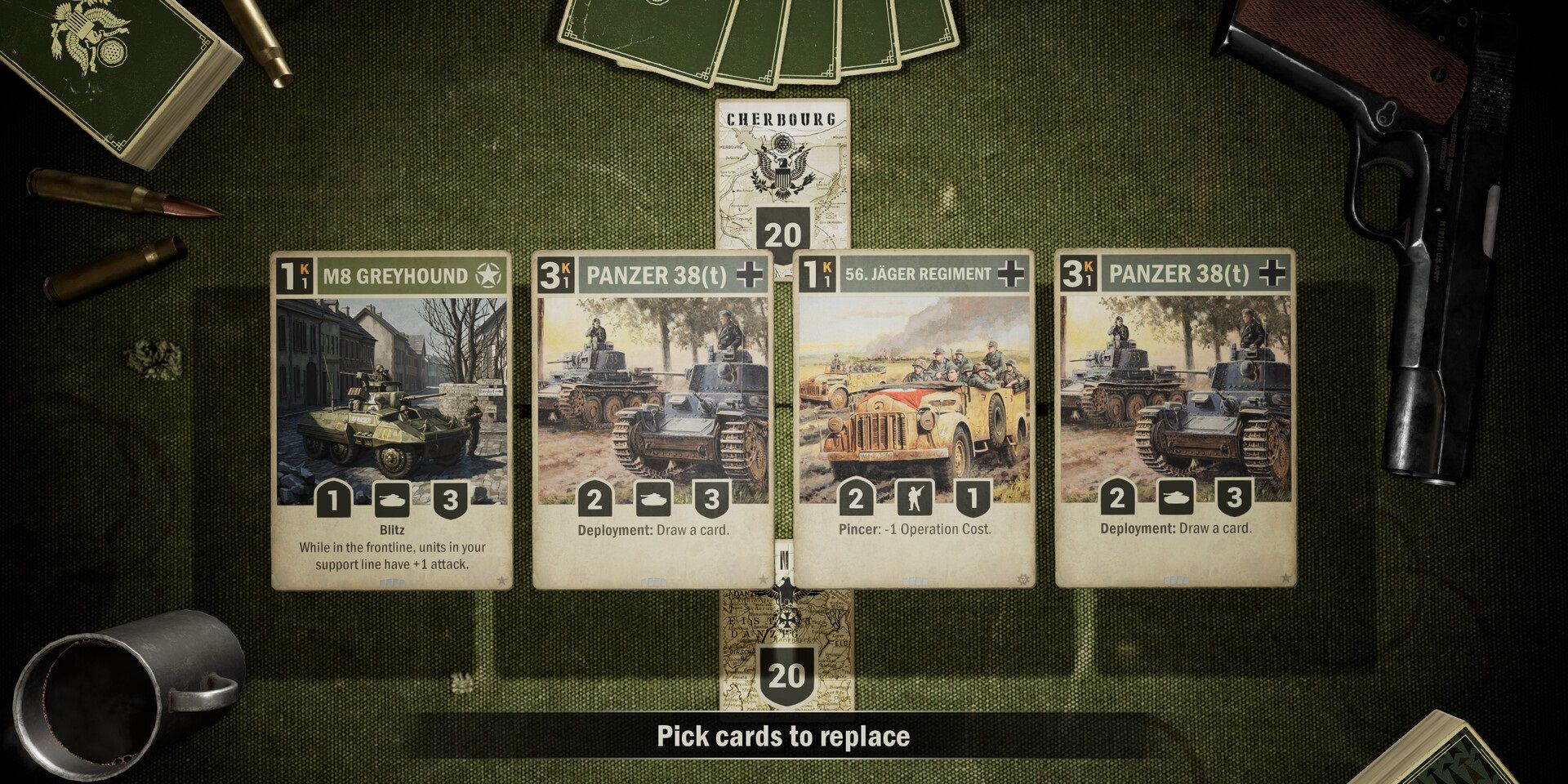 Managing your forces is an important part of any military campaign. In KARDS you need to carefully manage your resources (Kredits) between deploying new units, operating units already deployed on the battlefield and disseminating orders to support your battle plans.