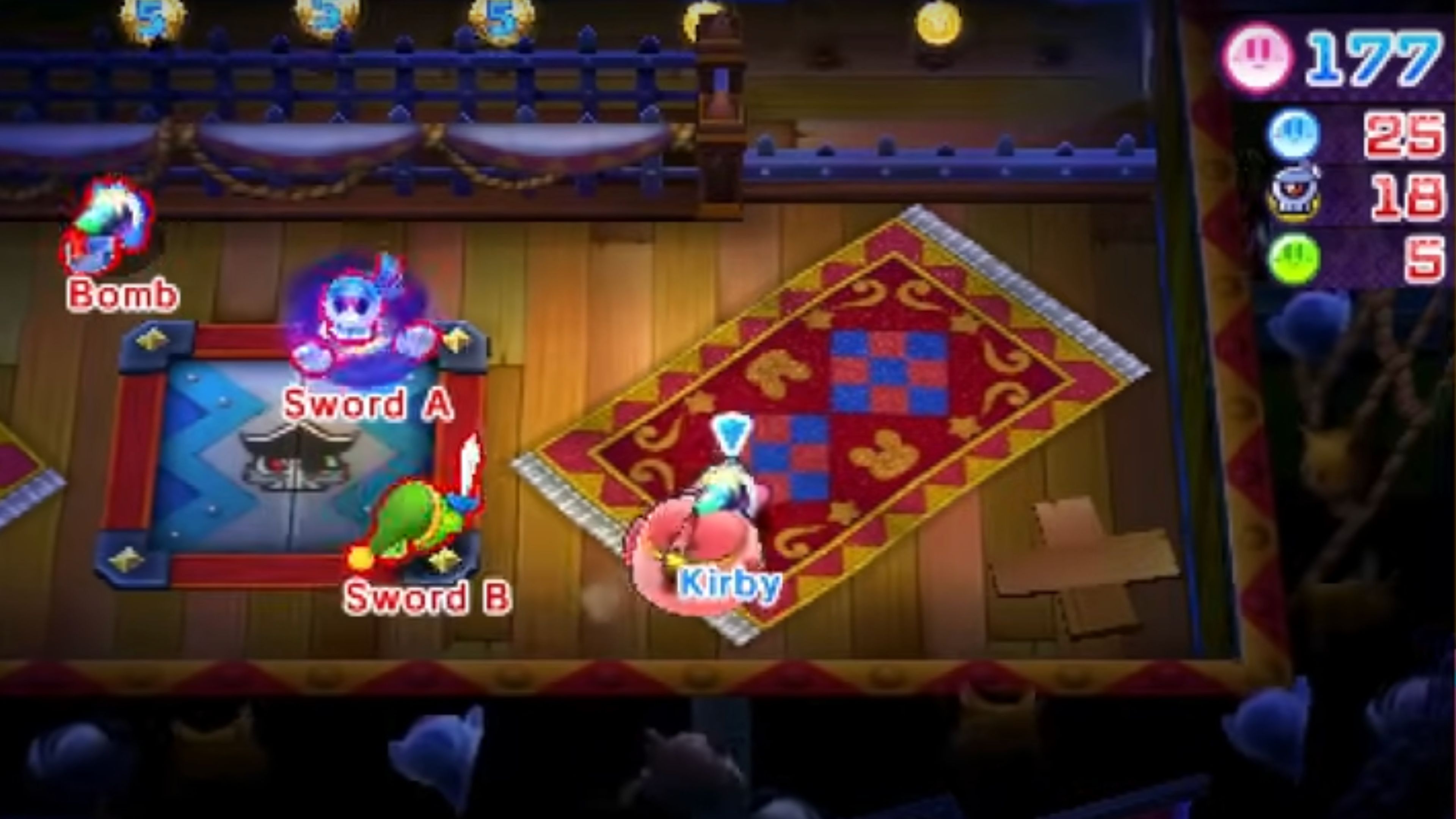 In Ore Express mode, hoard treasure until the fastest Kirby wins