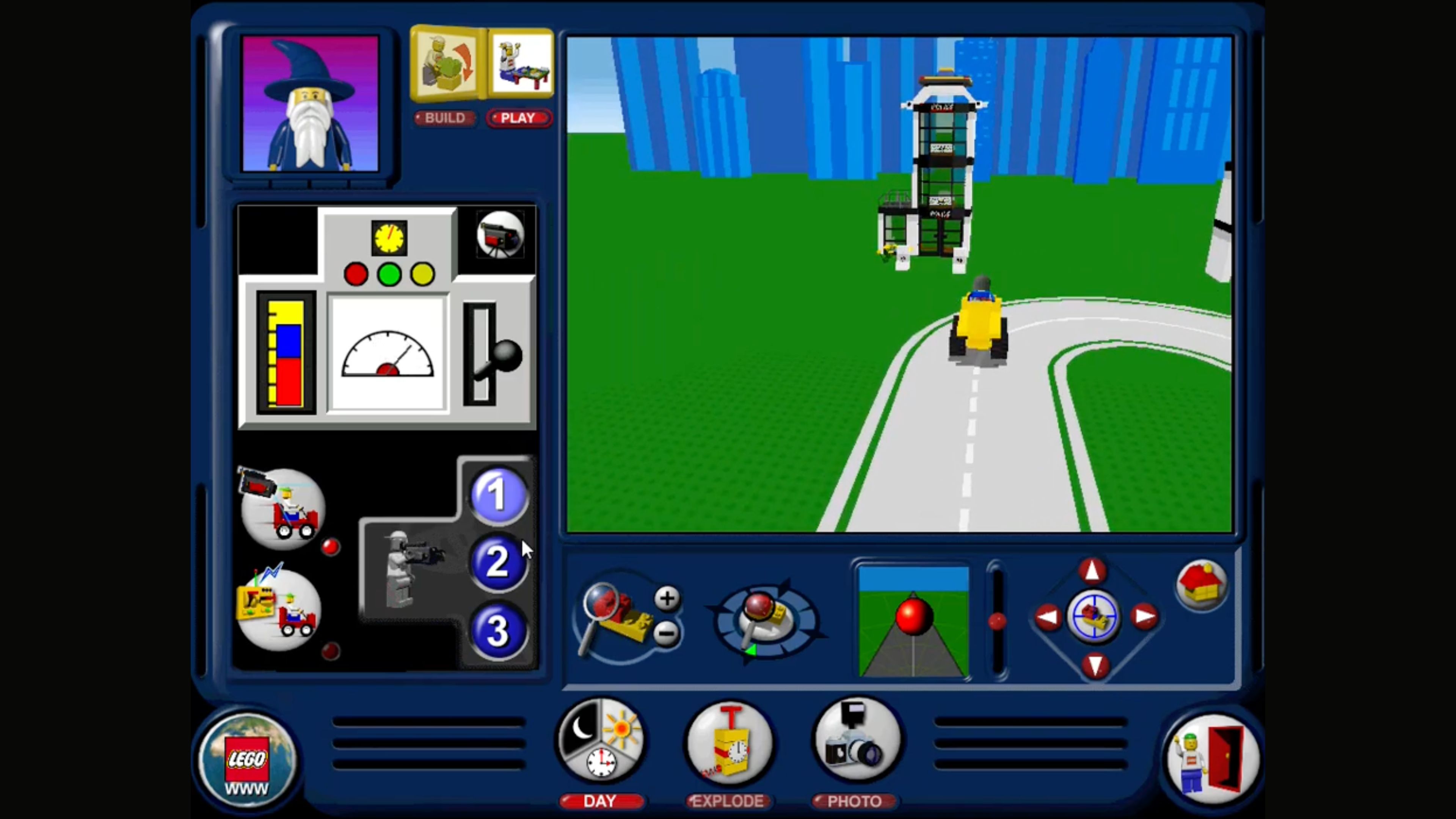 • Navigate and explore from the viewpoint of a Minifigure or a LEGO camera.