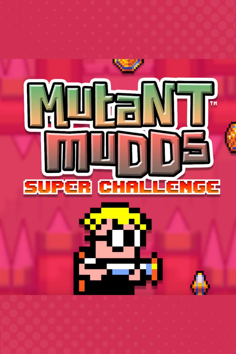 Here comes a challenge! Mutant Mudds Super Challenge!! Over 40 levels filled with malicious mutant mudds. This adventure is designed for super players; featuring a host of new platforming challenges and unique boss fights that will test your skills.