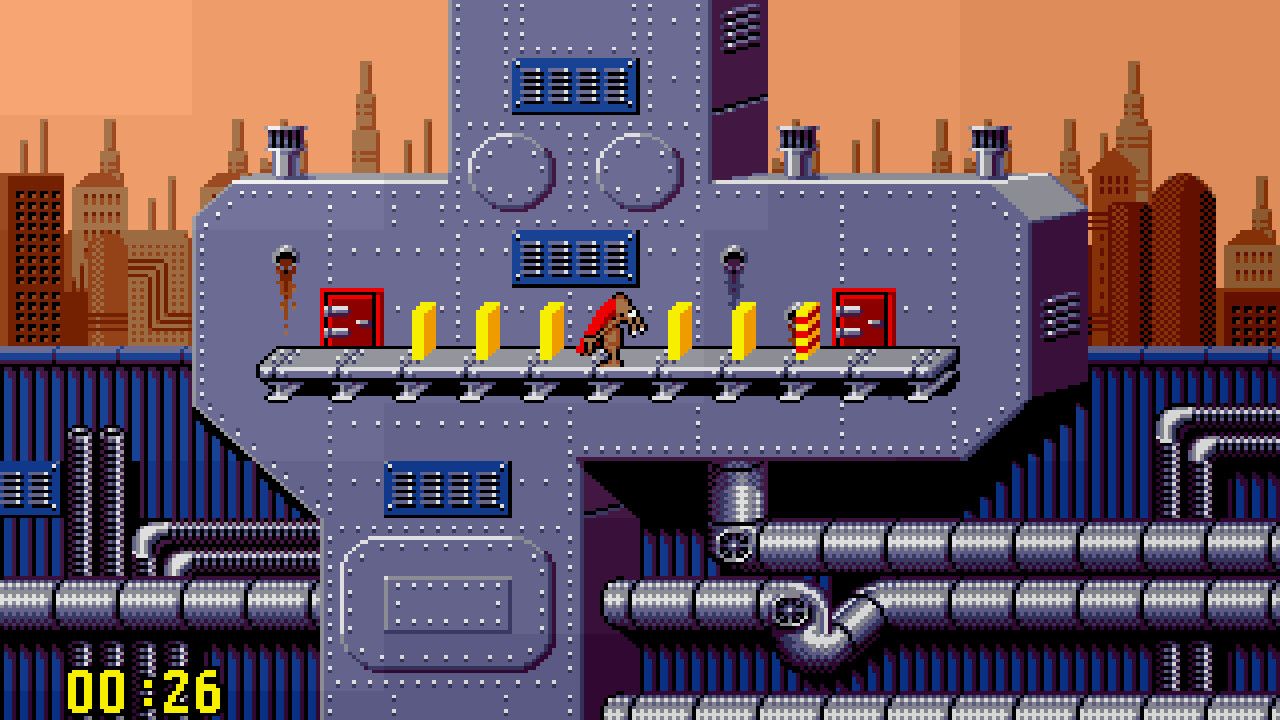 The game consists of 100 levels of increasing complexity over nine different themed worlds. Each level features several interconnected platforms holding a number of "dominoes". The aim is to rearrange the dominoes, such that with a single push, all of the dominoes are toppled, thus opening the exit to the next level. There are 11 different types of domino, identified by red and yellow patterns, each with different actions. The player controls G.I. Ant, who can move certain dominoes by carrying them one at a time.