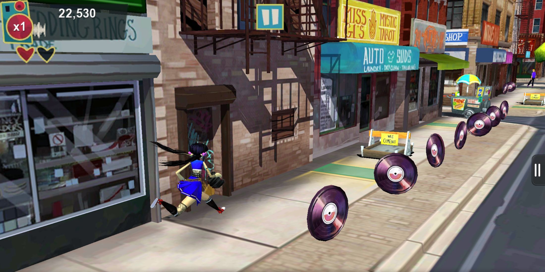 Record Run is an all-new rhythm-runner experience set to your music! Run, dodge, slide under, and jump over a variety of hazards in a bustling city, reactive to your song library. Collect records and backstage passes to unlock new content, challenge your friends to asynchronous song battles, and more in Record Run!