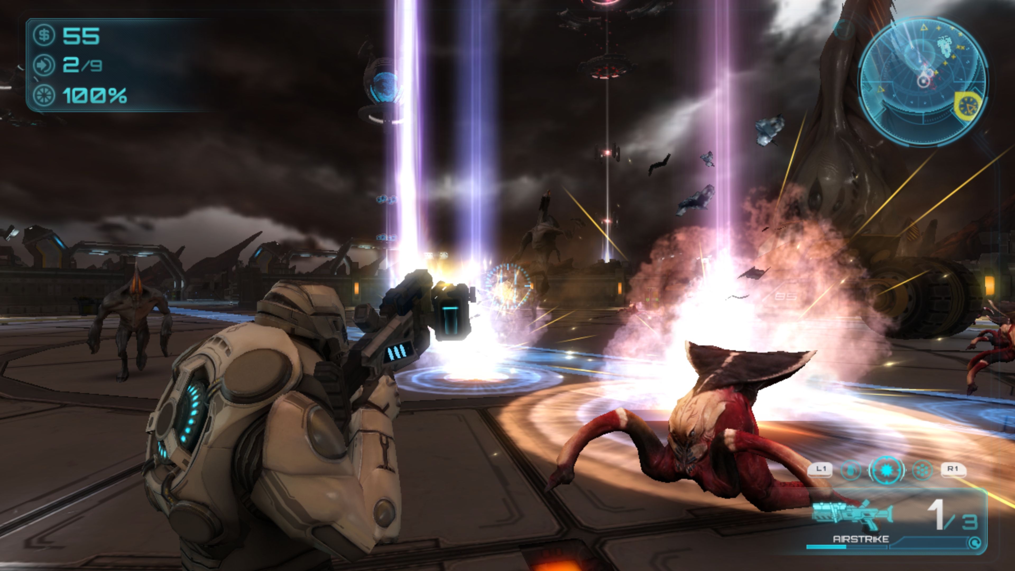 Earth is threatened by an alien species, the Ne’ahtu. Early in the twenty second century, the Ne’ahtu infected Earth’s energy grid with a computer virus that disabled the planet’s defenses. Before the Ne’ahtu could strike, computer prodigy Amy Ramanujan neutralized the alien computer virus and saved the planet. Now, the Ne’ahtu are back and Dr. Ramanujan is trying to prevent them from another all-out invasion of Earth. Switching between towers (to launch various missiles and grenades) and face-to-face combat (to attack with machine guns), the player’s mission is to join Dr. Ramanujan and defend Earth from the Ne’ahtu.