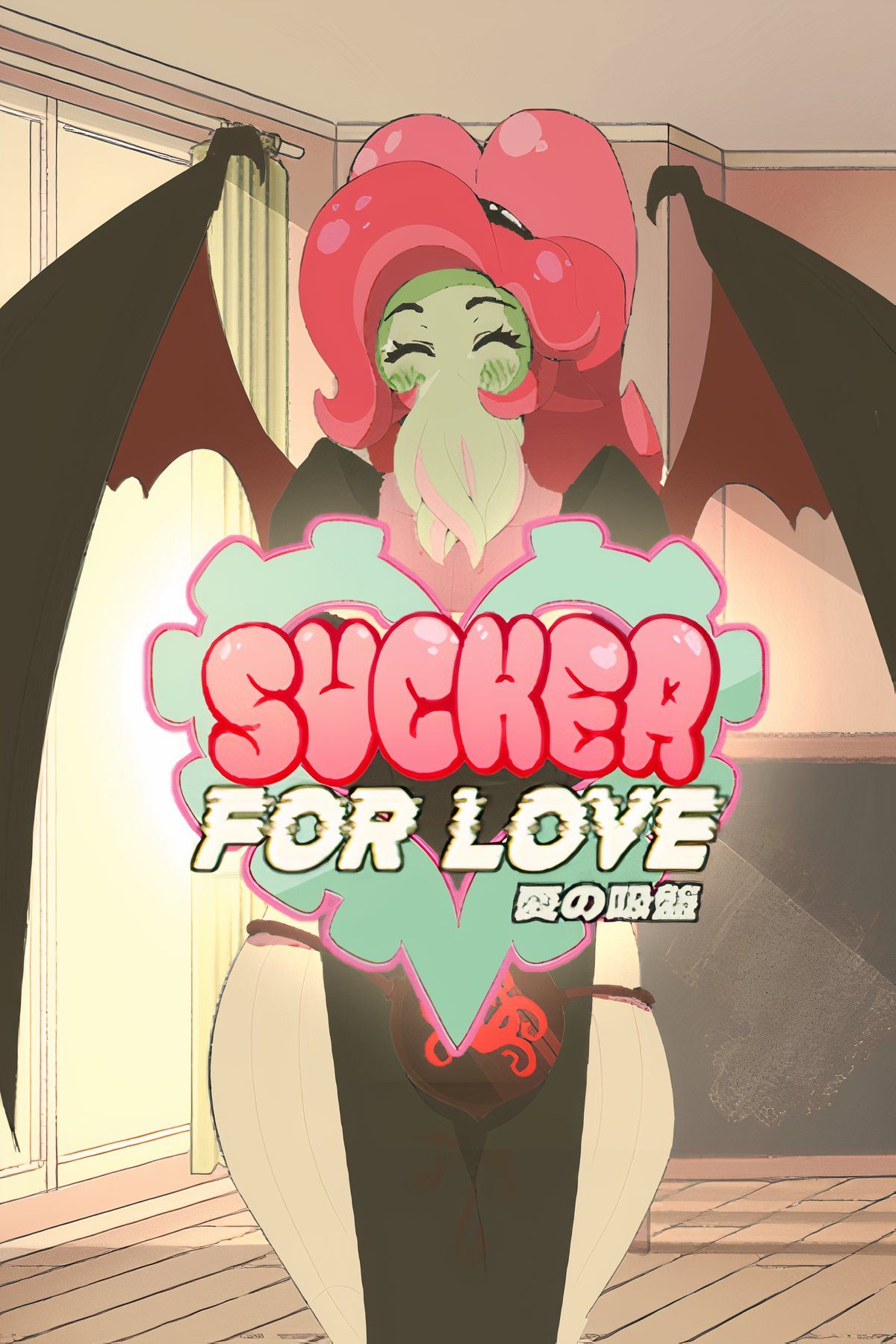 Obsessed with occult rituals, you have finally obtained the last thing you need to summon the eldritch horror that has been haunting your dreams; a strange, bright-pink Necronomicon. You perform the only ritual that doesn’t appear to be insane ramblings, and inadvertently summon Ln’eta, a cute cthulhu-like girl. She agrees to a kiss, on the condition that you perform a few rituals from the book for her first. Looking back at the Necronomicon… all of the other pages suddenly make sense?