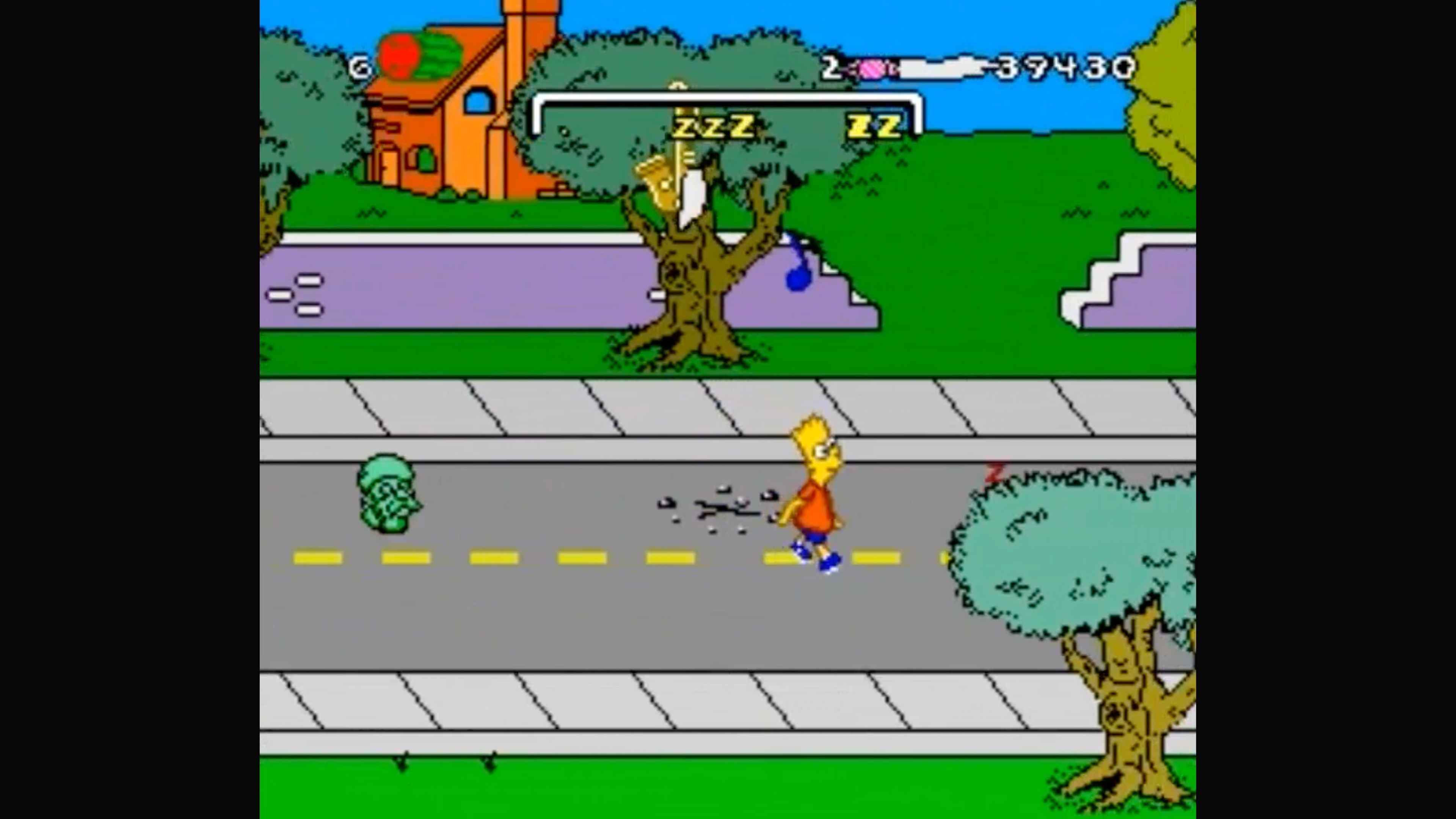 Eight levels, each one scarier than the last, with villains like Homer Kong, Momthra, a blue demon, and Barney Gumble riding a pink elephant. I have to collect a page on each level, before I wake up and blow the whole assignment. You're my only hope, man.