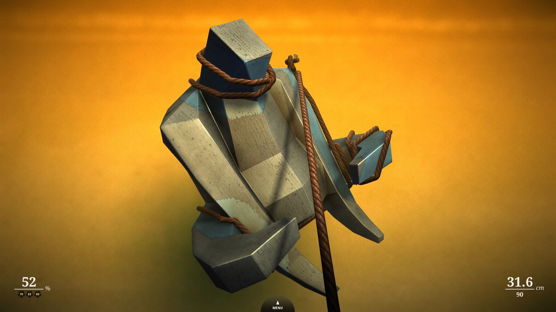 The goal of the game is to paint wooden sculptures by wrapping them in rope - a task that may sound simple but has surprising complexity. Each of the levels presents a spatial puzzle that becomes obvious through inspection. Some levels feature paint bombs that are helpful in covering complex areas of the object.