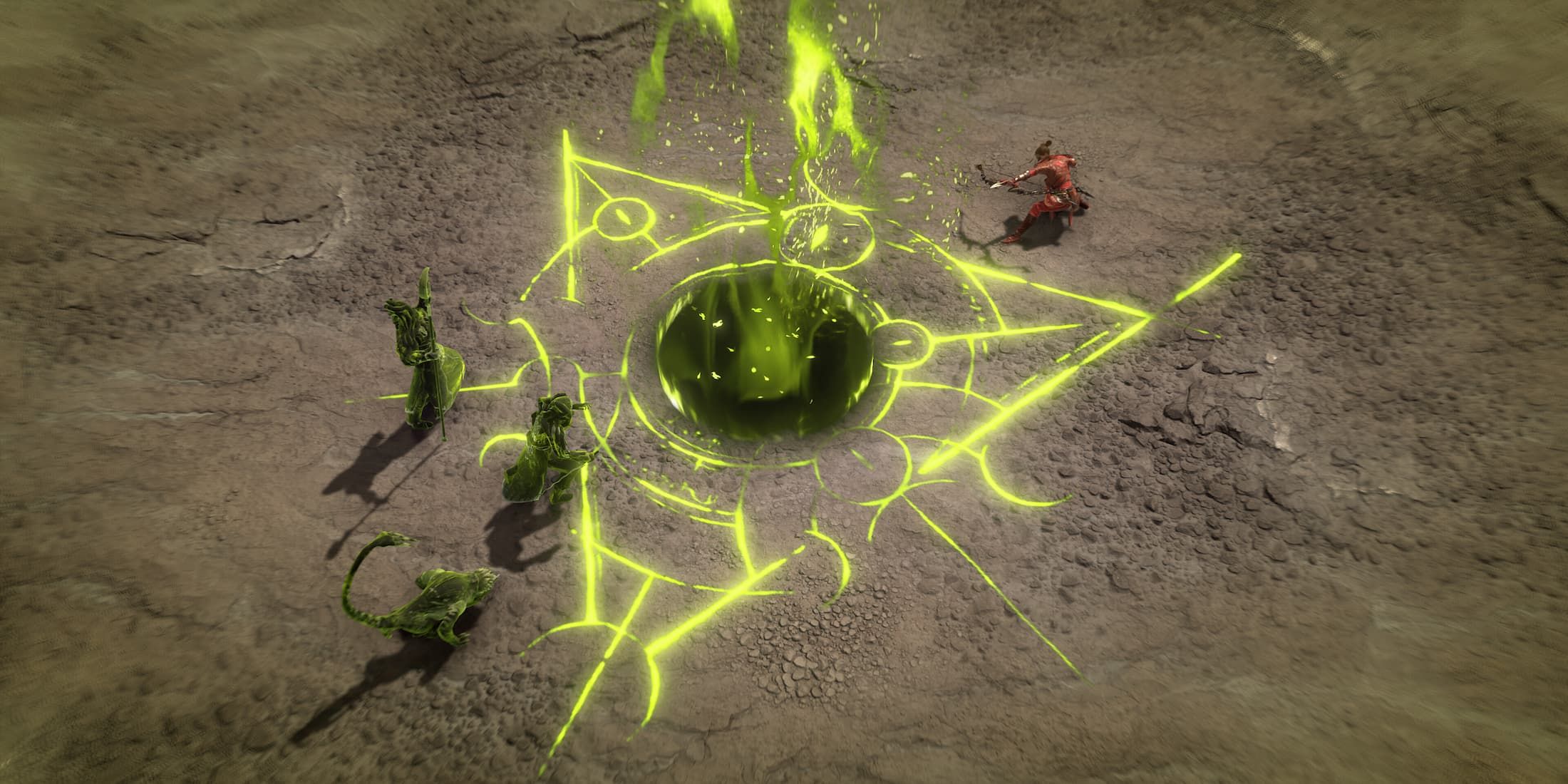 After standing still for 1 second, summon a Skull for 4 seconds that rotates around you and breathes fire that Burns enemies for 3 seconds. |