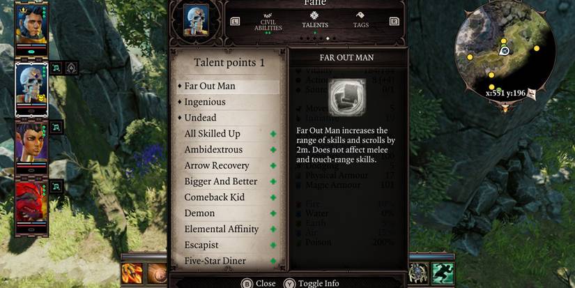 Getting within the line of sight of an enemy can be devastating for any party. This caveat becomes all the more obvious for more Vitality-lacking builds like Rogues and other spellcasters. However, thanks to Far Out Man, ranged specialists can continue their assault from afar without having to worry much about reach. Thanks to this Talent, all scrolls, Skills, and ranged attacks increase their distance with a whopping 2-meter extension.