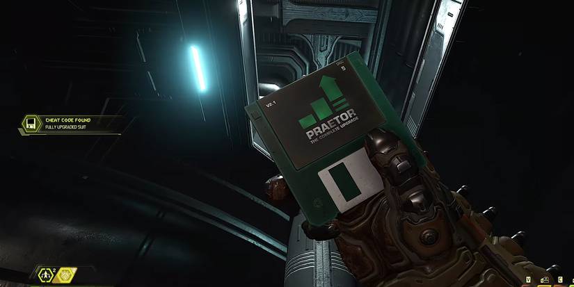 Most of the Cheat Codes are found throughout missions, but there are actually two of them hidden in Doom Guy's central hub, the Fortress of Doom. This one is only accessible once the ship is "powered" enough for you to access the auxiliary room that is separated by a bridge. Once you get to the one that has the original Prateor Suit floating in it, jump out the hole in the wall and wall, turn back around, and dash into a cubby about 3/4ths of the way down. In it is this cheat code which, like the name suggests, turns every single Rune on at once.