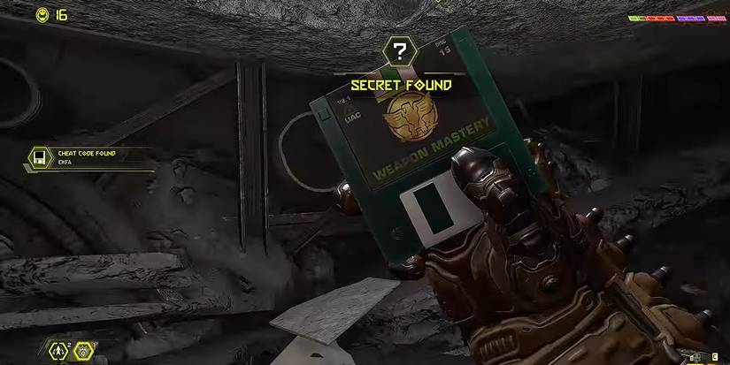 Again, this is another code we've noticed players stumbling across naturally. The collectibles in Doom Eternal aren't all that hard to find, there is just a lot of them. In any case, keep your eyes open until you swing off a bar into a room that sort of looks like a Laundromat. Once you clear the demons out simply look for a small hole in the floor and you're good! And, the IDKFA unlocks all weapons and powers them up to fully mastered whenever its equipped